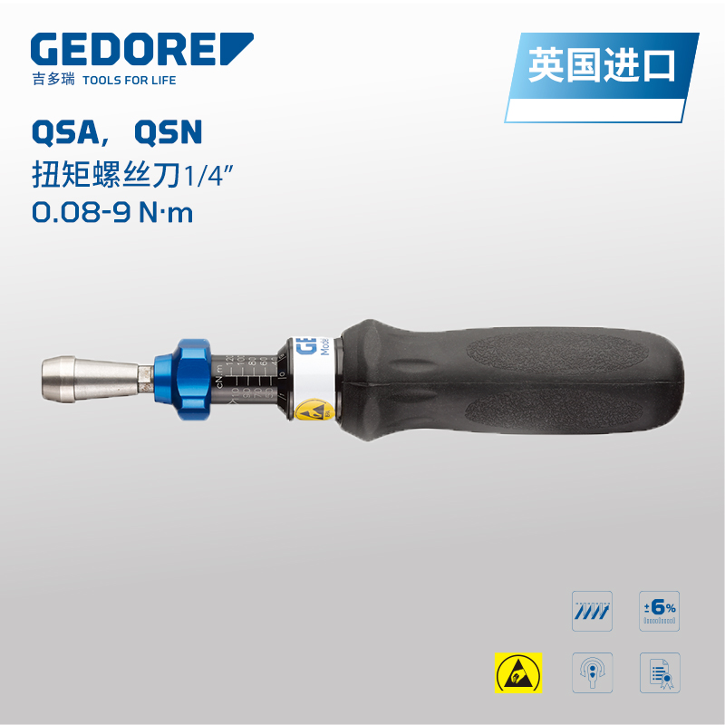 GEDORE吉多(duō)瑞英國(guó)原裝進口1/4方6.3mm可(kě)€•調節扭矩螺絲批0.08-9N·m