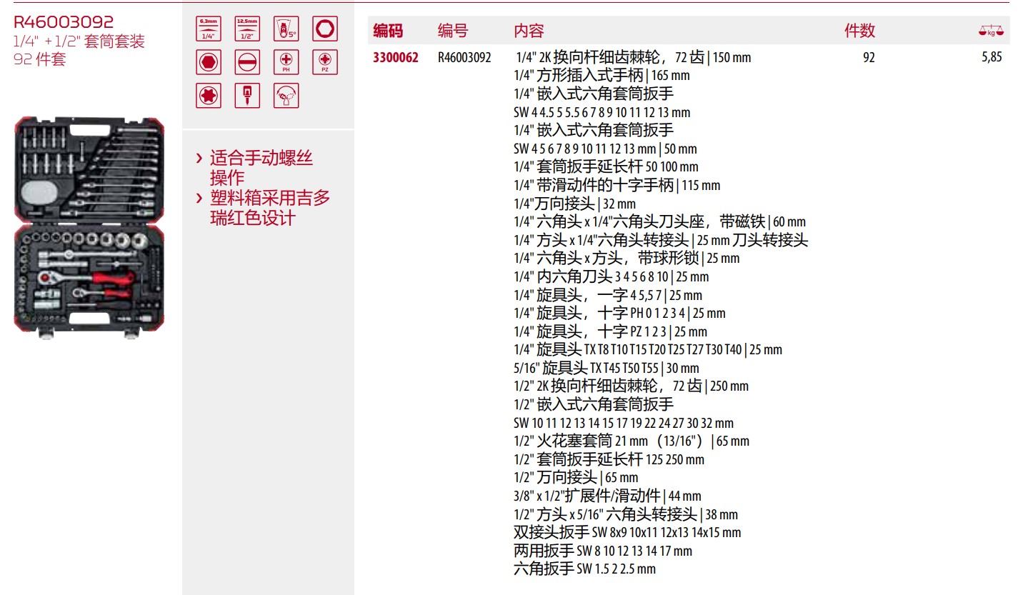 GEDORE吉多(duō)瑞德國(guó)品質≈R46003092套筒套裝92件(jiàn)棘輪扳手